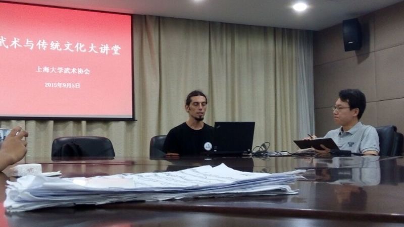 Στα πλαίσια σειράς διαλέξεων με θέμα τις Πολεμικές Τέχνες, πραγματοποιήθηκε στις 5 Σεπτεμβρίου 2015 στο Τμήμα Φυσικής Αγωγής του Πανεπιστημίου της Σανγκάης, διάλεξη με κύριο θέμα το Τάι Τσι